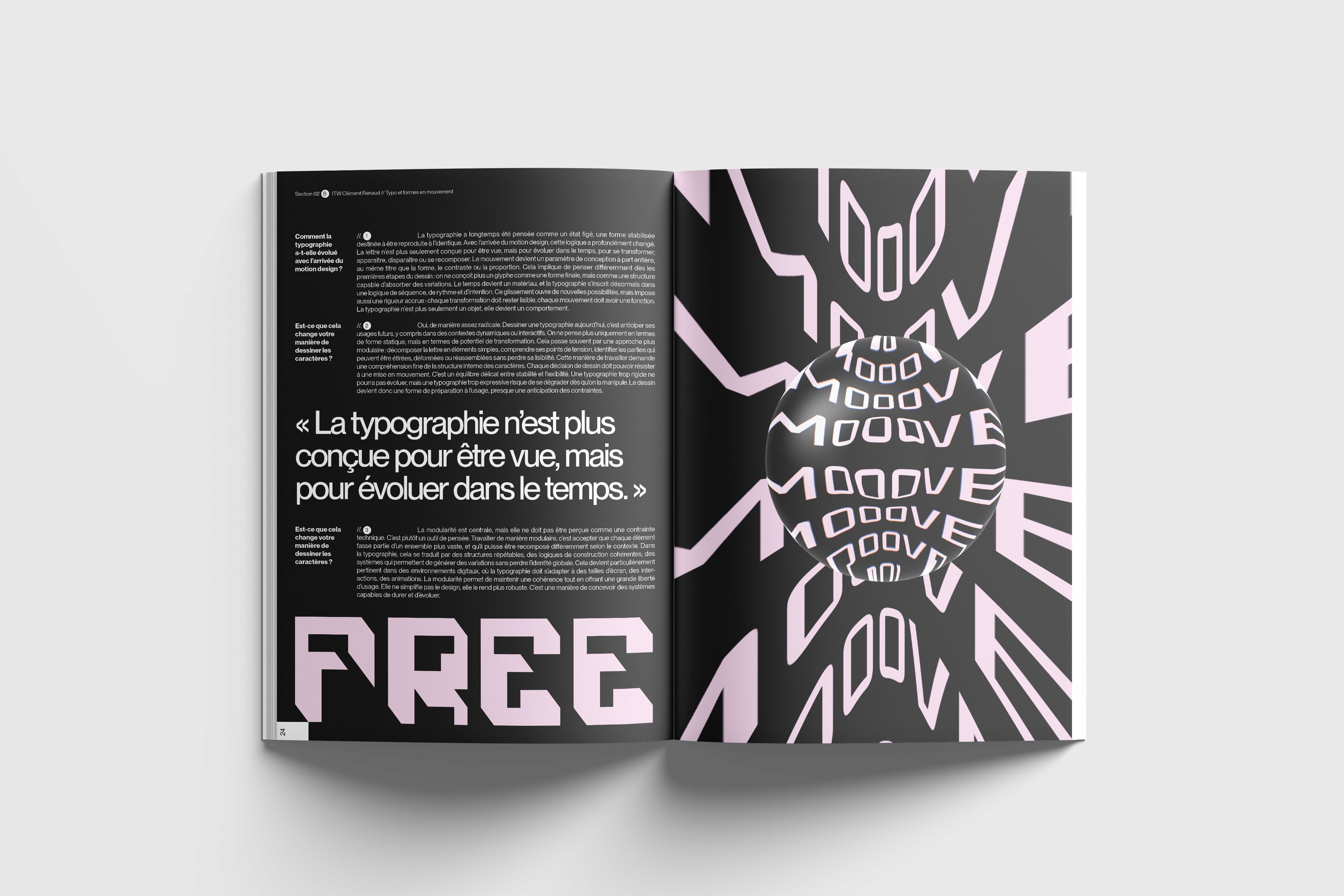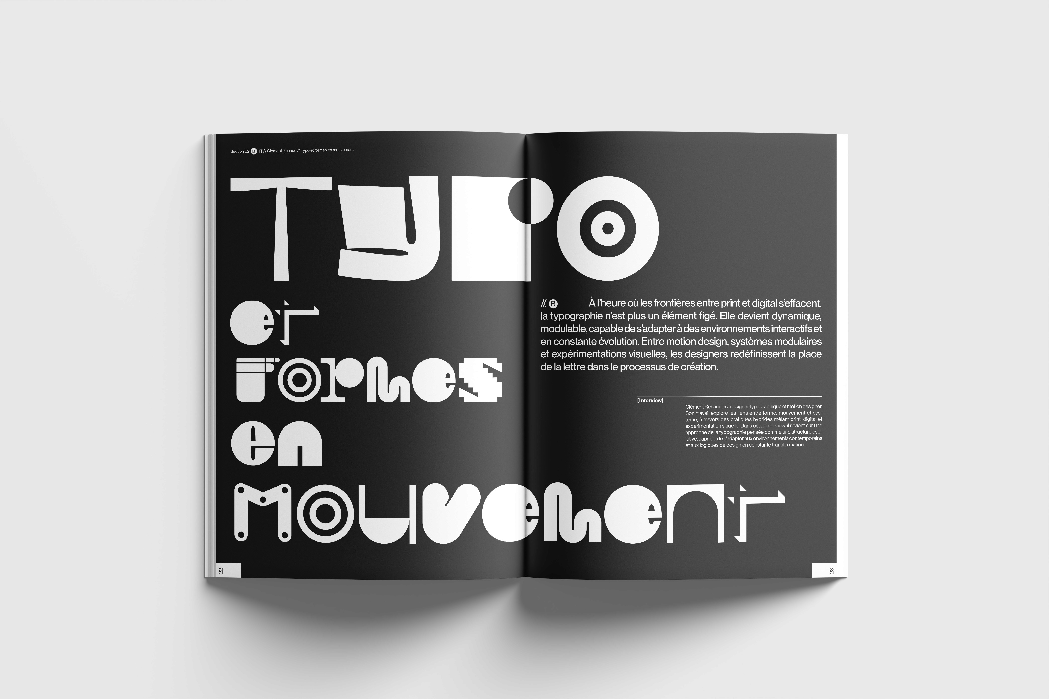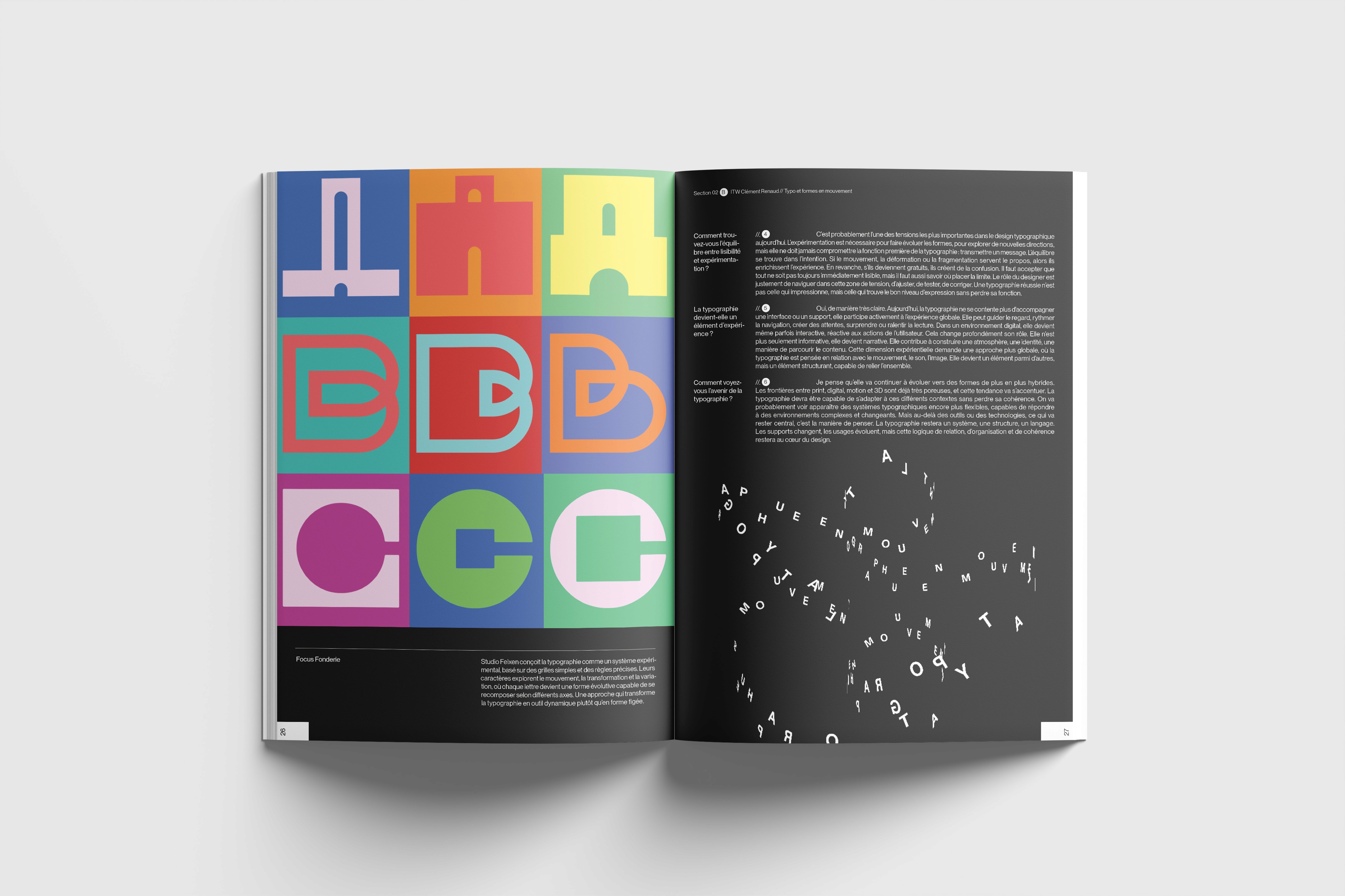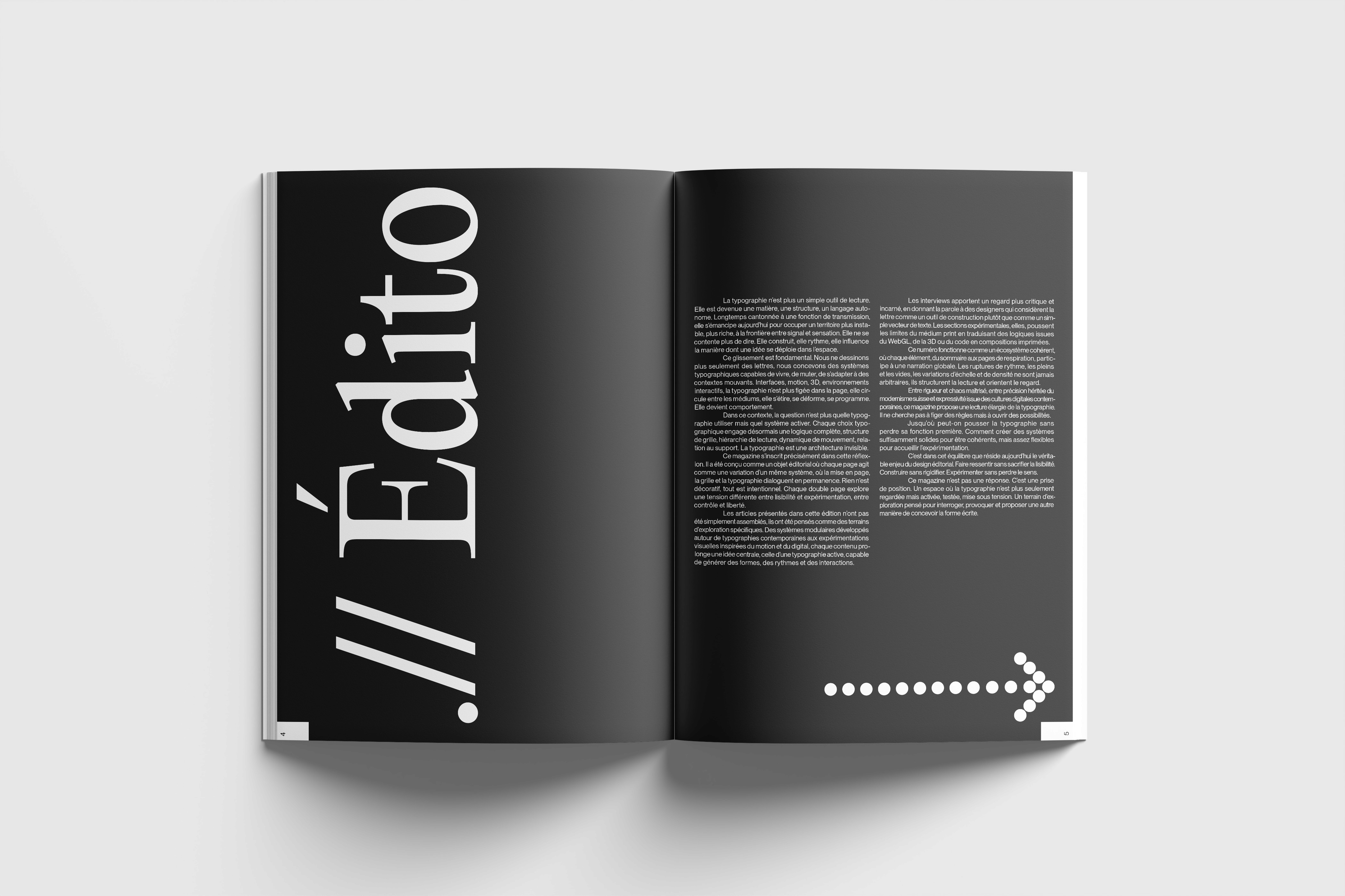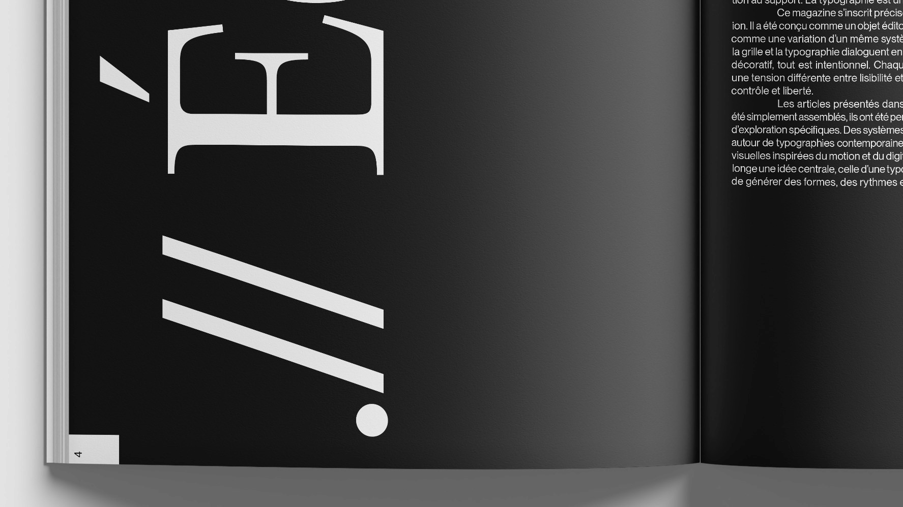 La typographie occupe une place centrale dans le design éditorial, mais reste souvent limitée à une fonction de lecture. Ce projet s’inscrit dans une volonté d’explorer son potentiel graphique et structurel.