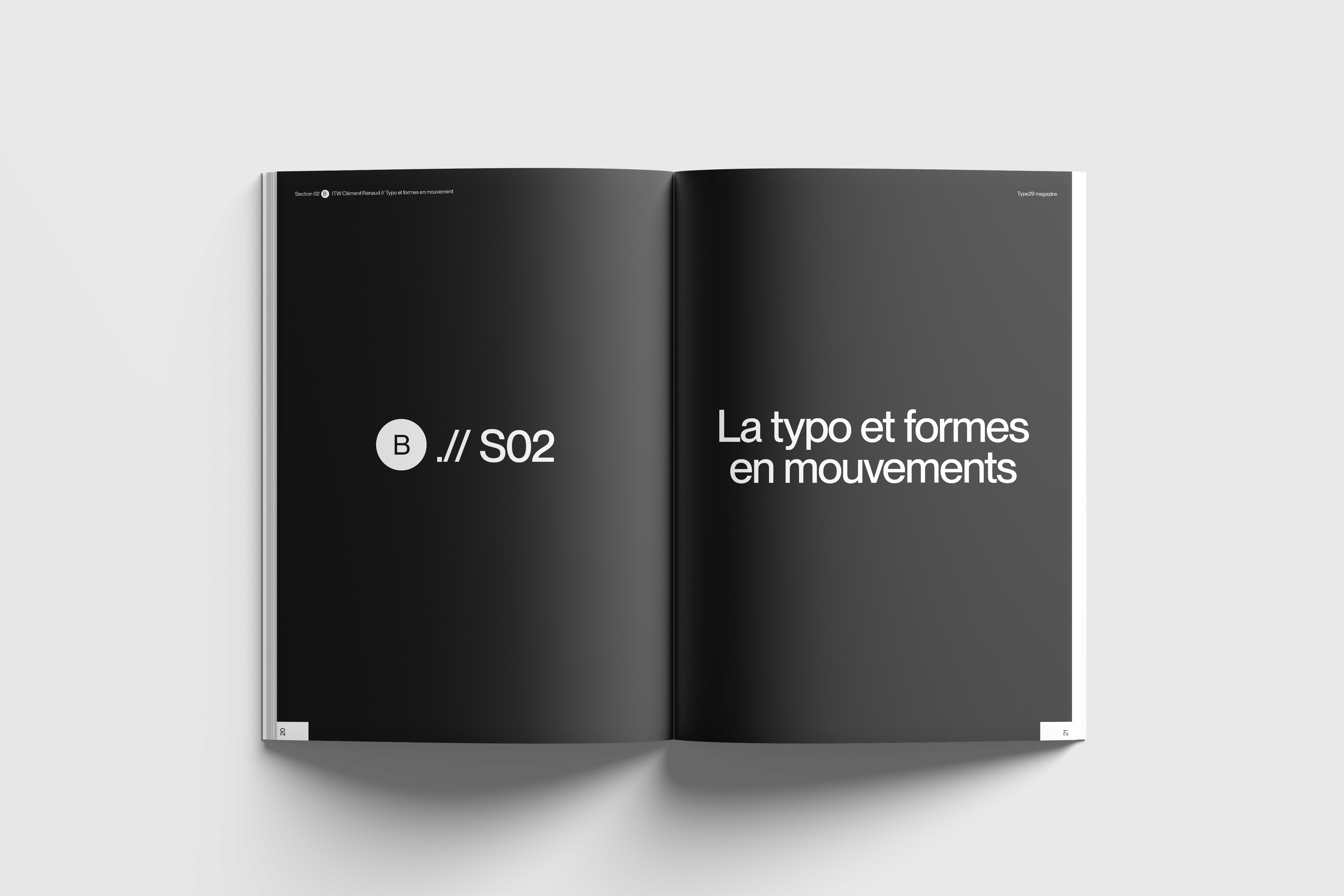 TYPE est conçu comme un système éditorial combinée à un fort contraste typographique. Le projet intègre des visuels générés en WebGL afin de créer un dialogue entre print et esthétiques digitales.